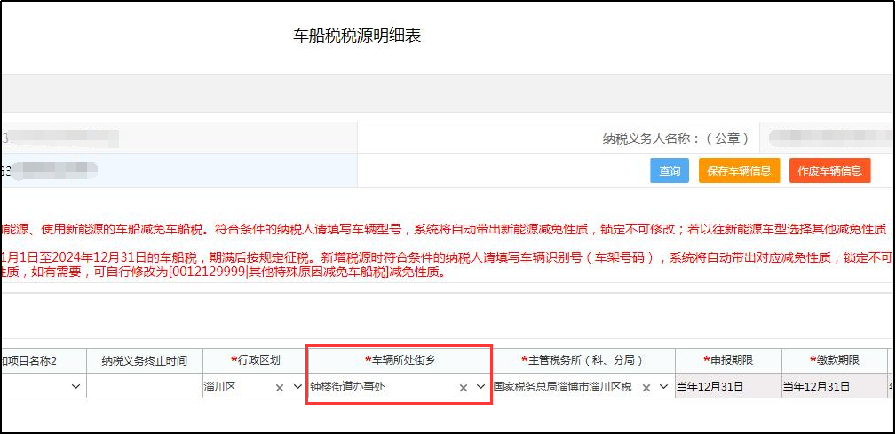 我單位在車(chē)船稅稅源明細(xì)表中,維護(hù)車(chē)輛稅源信息時(shí),發(fā)現(xiàn)稅源信息的“車(chē)輛所處街鄉(xiāng)”顯示錯(cuò)誤,怎么辦?