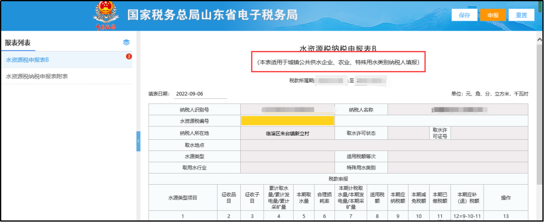 水資源稅申報(bào)B表,適用于城鎮(zhèn)公共供水企業(yè)、農(nóng)業(yè)、特殊用水類(lèi)別納稅人填報(bào)。該納稅人的第一條水資源稅源的“取用水行業(yè)”是“其他”行業(yè),所以在B表中無(wú)法選擇,在A表中可以選擇。