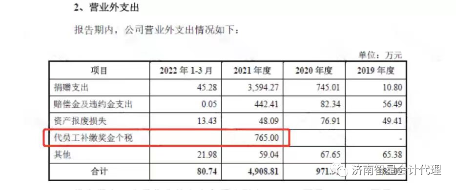 但有意思的是,當(dāng)小編翻開他的招股說明書 ,注意到“營業(yè)外支出”科目披露了這樣一項指標(biāo):代員工補(bǔ)繳獎金個稅:765萬元。