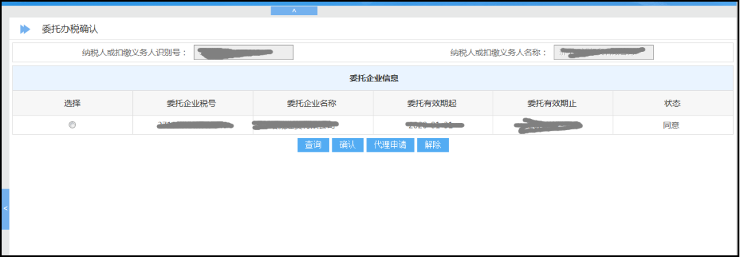說明:系統(tǒng)也支持代理企業(yè)通過“委托辦稅確認(rèn)”模塊發(fā)起申請,被代理單位通過“委托辦稅申請”模塊確認(rèn)。