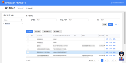 ①以企業(yè)身份登錄電子稅務局,功能菜單依次選擇【開票業(yè)務】-【開票信息維護】—【客戶信息維護】,界面如圖 6所示。