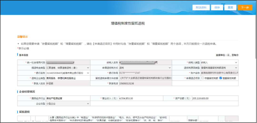三、增值稅制度性留抵退稅功能 優(yōu)化內(nèi)容: 調(diào)整增值稅制度性留抵退稅功能,取消特定行業(yè)要求企業(yè)劃型必須為中型或大型的校驗(yàn)。 功能操作: 登錄電子稅務(wù)局,打開(kāi)“我要辦稅—一般退(抵)稅管理—退抵稅費(fèi)申請(qǐng)(增值稅制度性留抵退稅)”,取消特定行業(yè)要求企業(yè)劃型必須為中型或大型的校驗(yàn),如下圖: