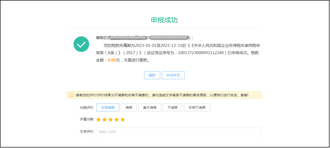 填寫(xiě)完成后點(diǎn)擊右上角“申報(bào)”按鈕提交申報(bào)表,系統(tǒng)返回申報(bào)結(jié)果,如下圖: