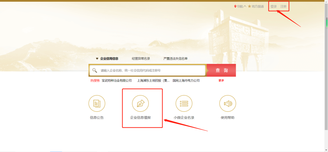 ①登錄國家企業(yè)信用信息公示系統(tǒng),點(diǎn)擊【企業(yè)信息填報(bào)】