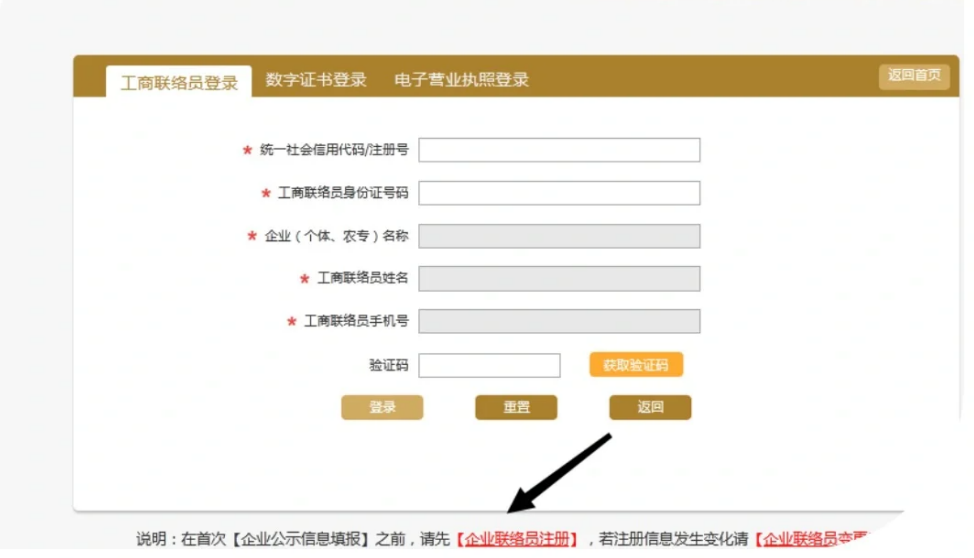 如果已經(jīng)注冊(cè)過工商聯(lián)絡(luò)員,則直接登錄即可;沒有注冊(cè)過,需要先注冊(cè)工商聯(lián)絡(luò)員。