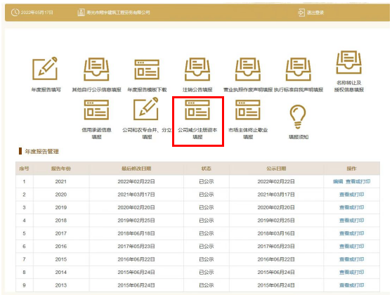 ②登錄以后,選擇【公司減少注冊(cè)資本填報(bào)】