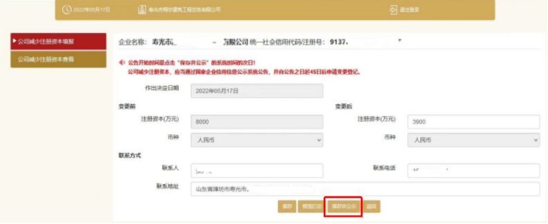 ③根據(jù)實(shí)際減資情況填寫資料,【保存并公示】